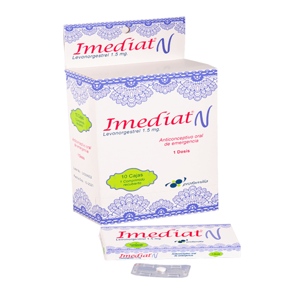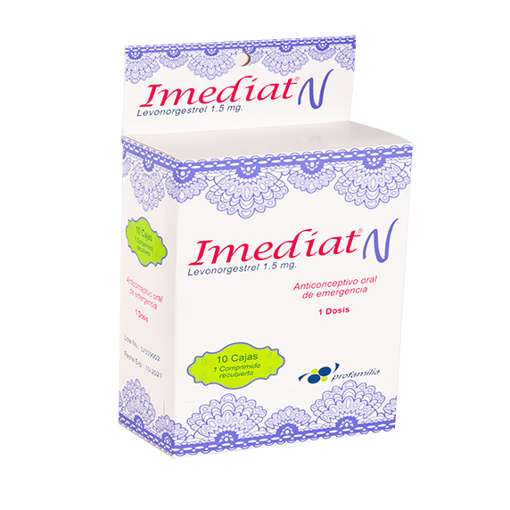 El anticonceptivo de emergencia Imediat N para uso por vía oral. Debes tomar un comprimido tan pronto sea posible, preferiblemente dentro de las 12 horas, y no más tarde de 72 horas después de haber tenido relaciones sexuales sin protección.