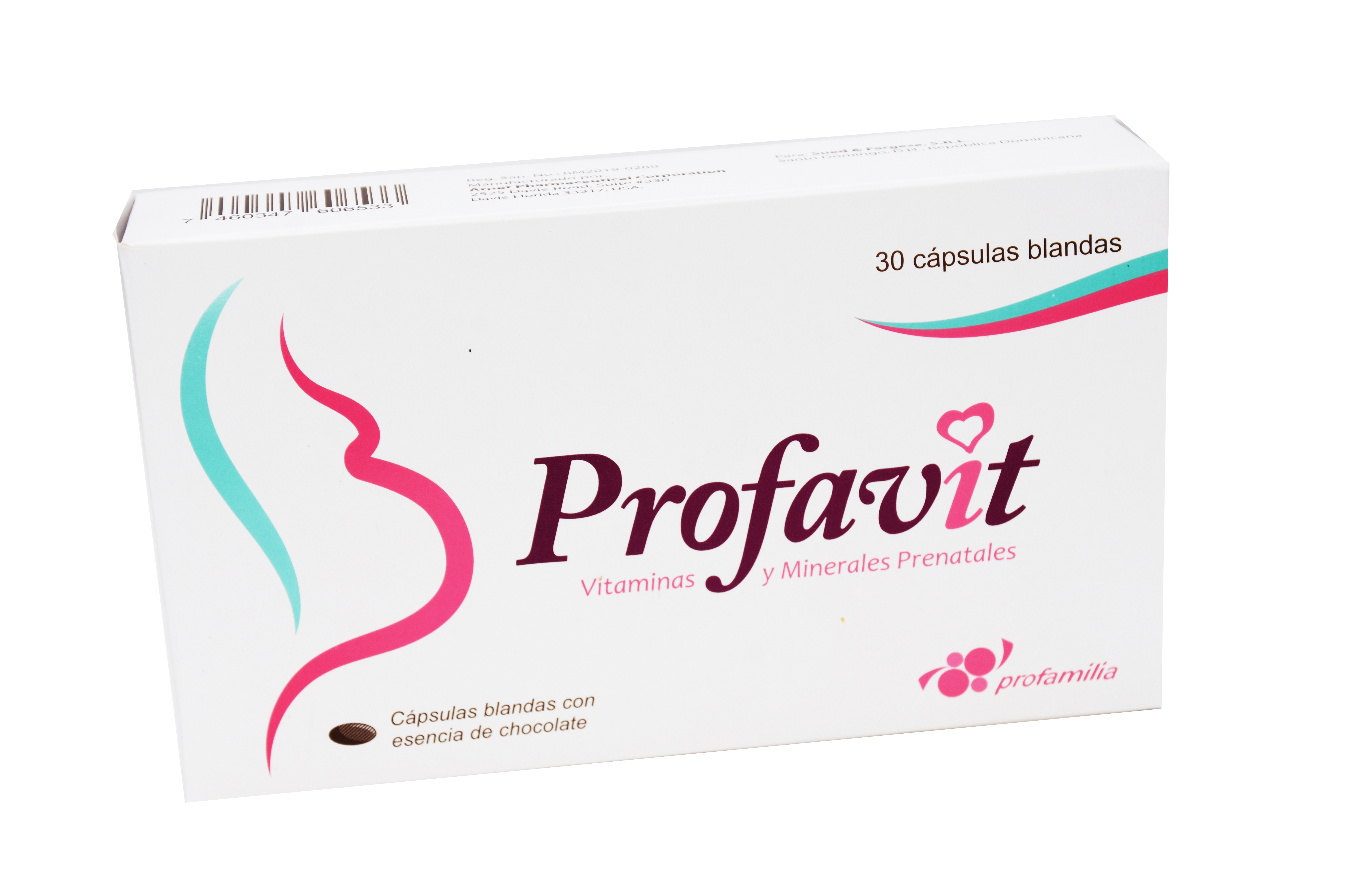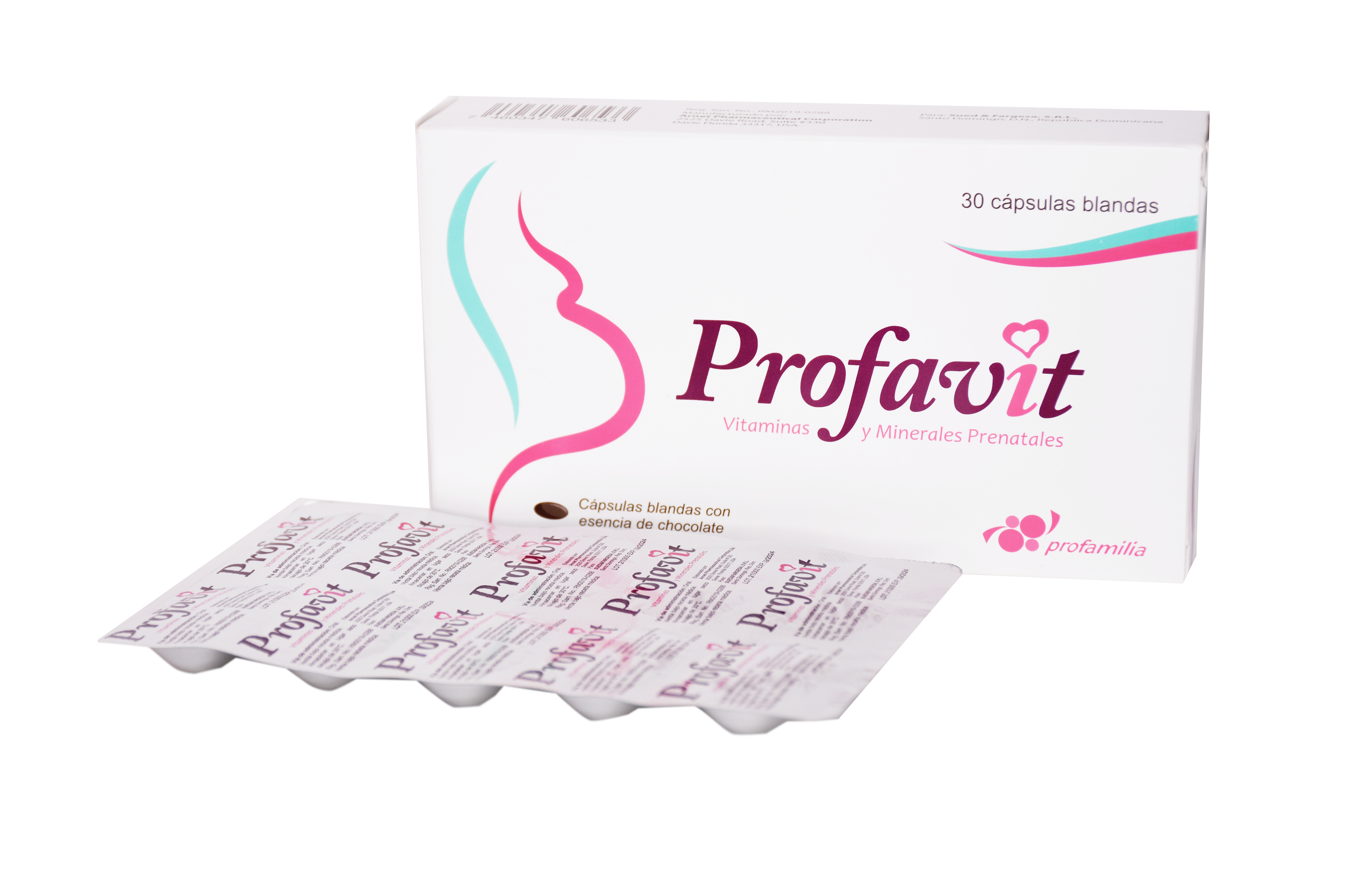 Profavit es un multivitamínico prenatal que proporciona vitaminas y minerales esenciales para las carencias nutricionales, ayuda a prevenir las malformaciones congénitas y los embarazos ectópicos. Se indica en una dosis diaria de una cápsula, de características blanda, gelatinosa y con sabor a chocolate para una ingesta más cómoda. También puede ser utilizada en pacientes con deficiencia de hierro, vitaminas y minerales, aunque no estén embarazadas.