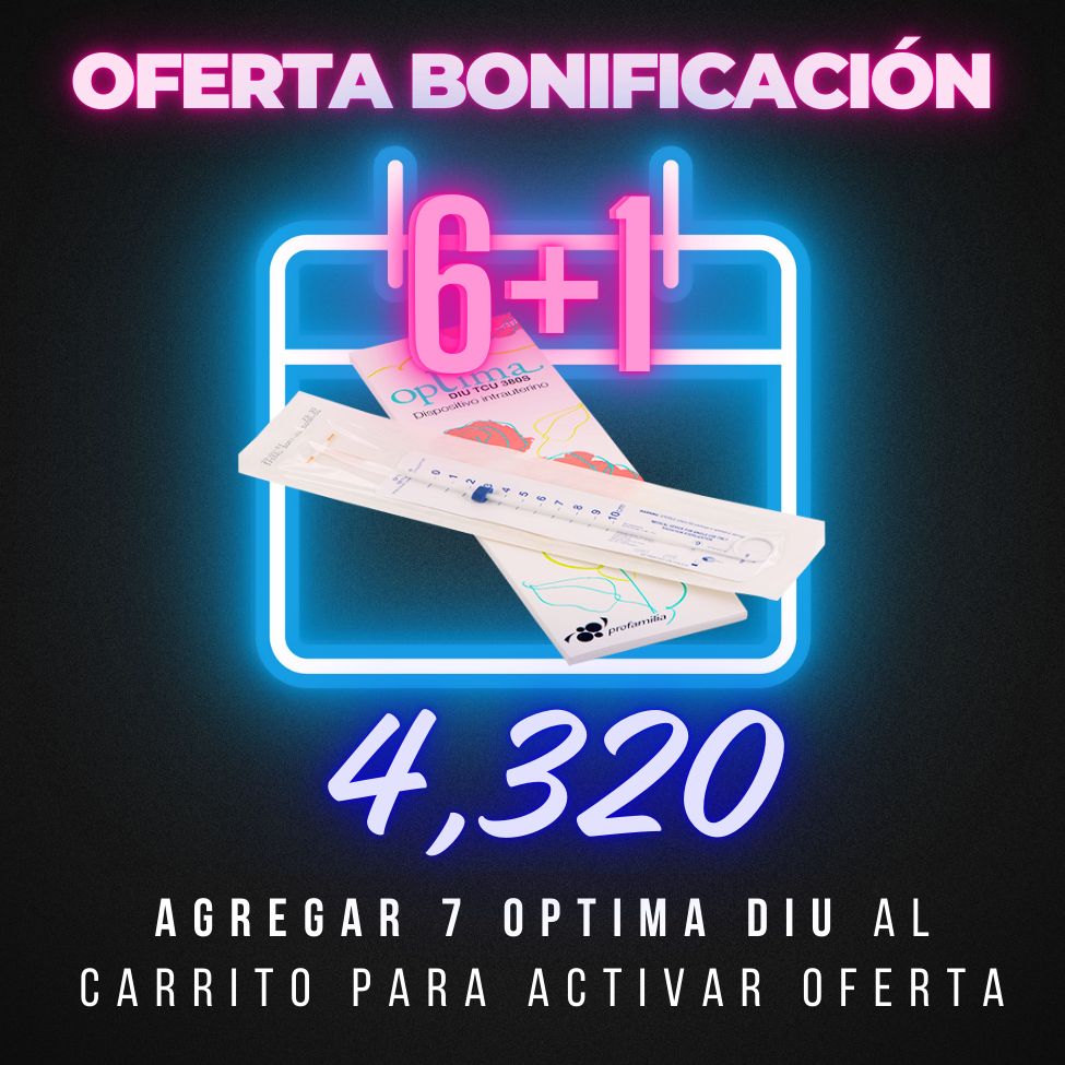 Anticonceptivo Optima Diu que contiene cobre y es colocado en la cavidad uterina para evitar el embarazo. El cuerpo del DIU está conformado por una T flexible de polietileno, siendo el asta de la T enrollada con hilo de cobre y cada brazo de la T lleva un cilindro de cobre. Dos hilos blancos de polietileno salen a través del canal cervical con extensión de 2 a 3 cm, para indicar la presencia del OPTIMA y para facilitar su retirada.